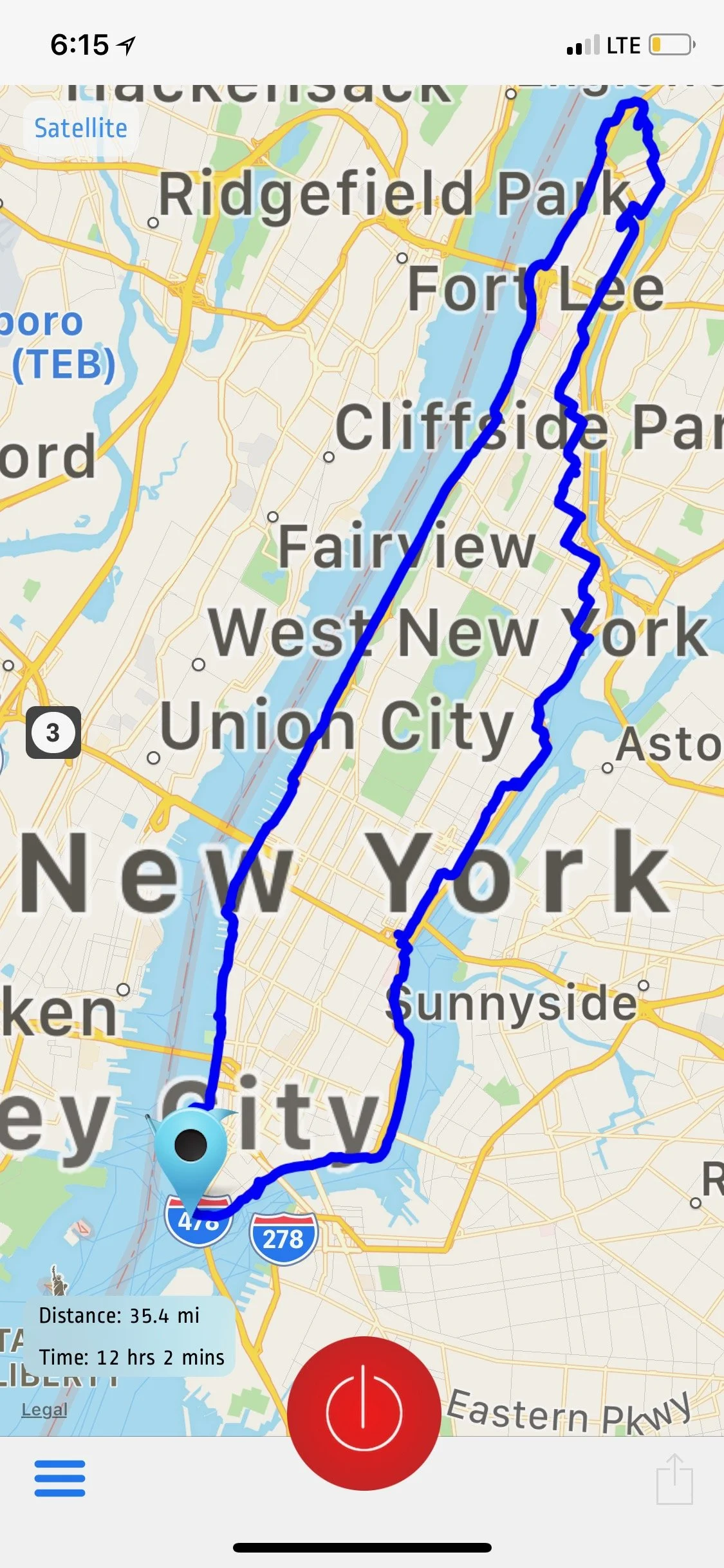 Walk 4 - Circumference of Manhattan - 34.4 miles. Aug 9 Written By Ken Hamm 34. 4 miles, 12 hours & 2 minutes. 8/9/18 Ken Hamm
